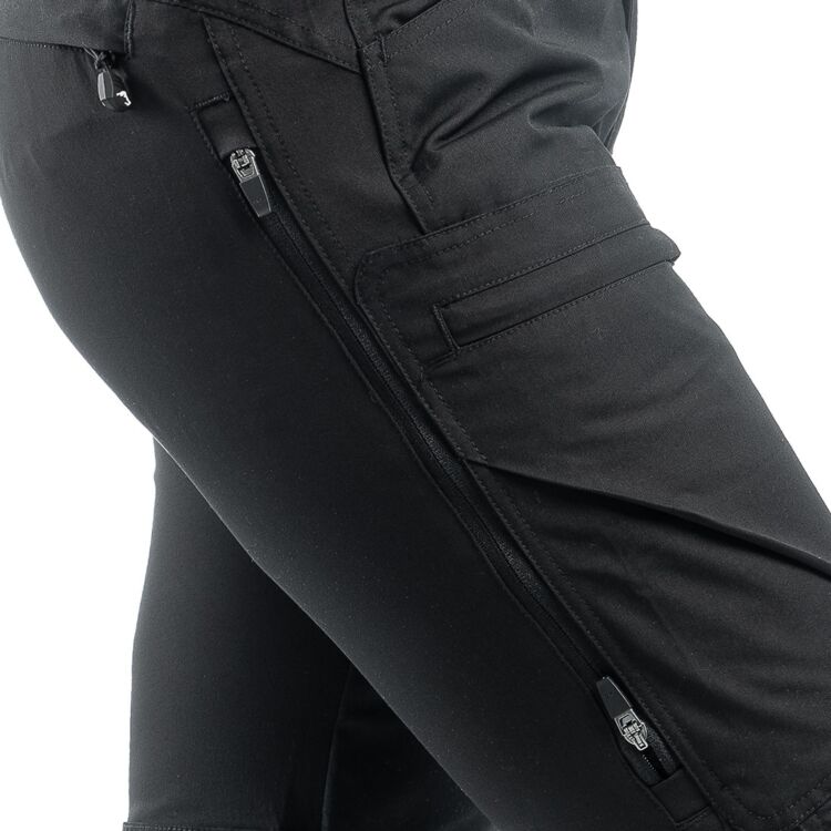 Nyitott oldalzsebek és D-gyűrűs combzsebek (jobb combnál 2 cipzáras zseb, mobiltelefon tárolóval)